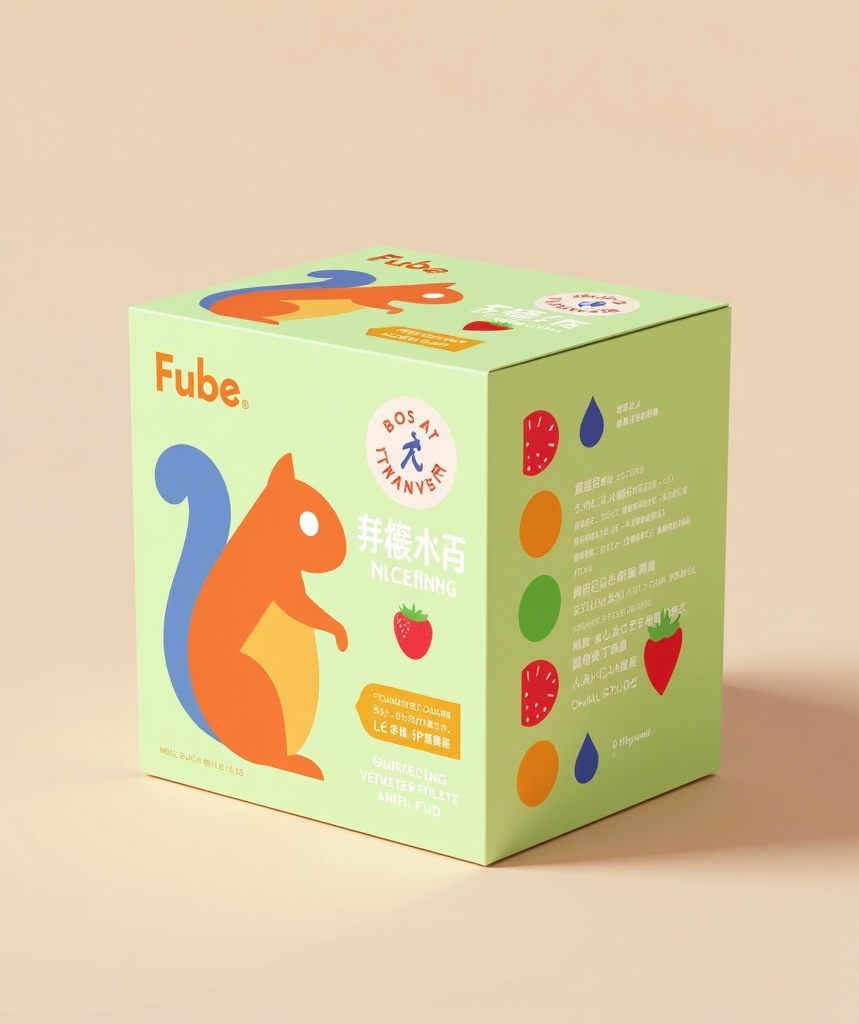 5. **隐藏细节**:展开盒体平铺后,IP松鼠与果蔬群组可拼接成完整农场场景