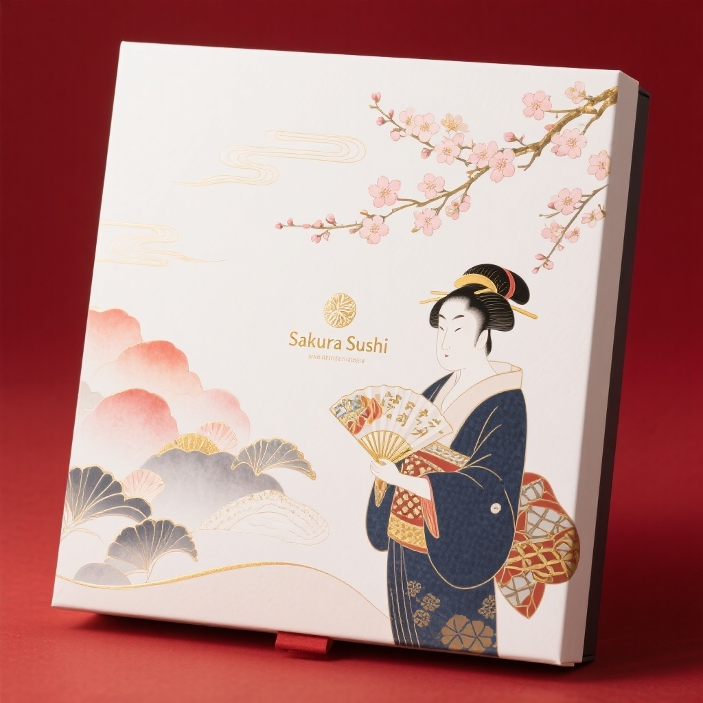 - **设计元素**:金箔勾边樱花枝、浮世绘细密笔触仕女、相扑力士束腰带图腾、烫金书法字