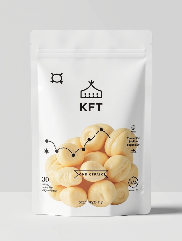 - **产品**:自封袋 - **品牌名**:KFT - **包装样式**:自封袋 - **设计风格**:简约现代风格 - **设计元素**:矢量装饰线、点状装饰、品牌logo "KFT" - **主题配色**:透明底色,黑色线条
