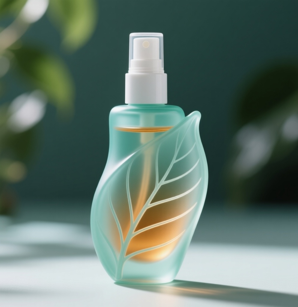 - **中景特写**:瓶身占据画面70%以上,凸显叶子造型的曲线美。
