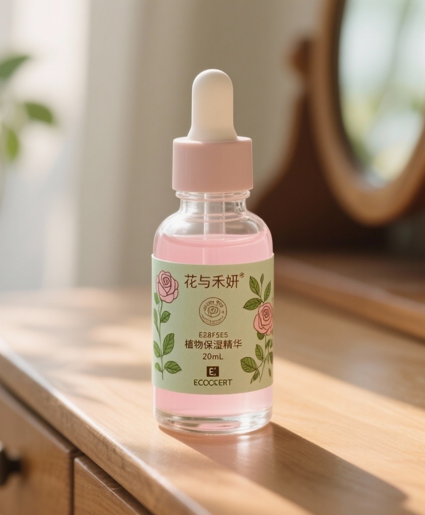 - 视觉:透明滴管瓶特写(透出淡粉色精华液),瓶身标签标注“20mL”