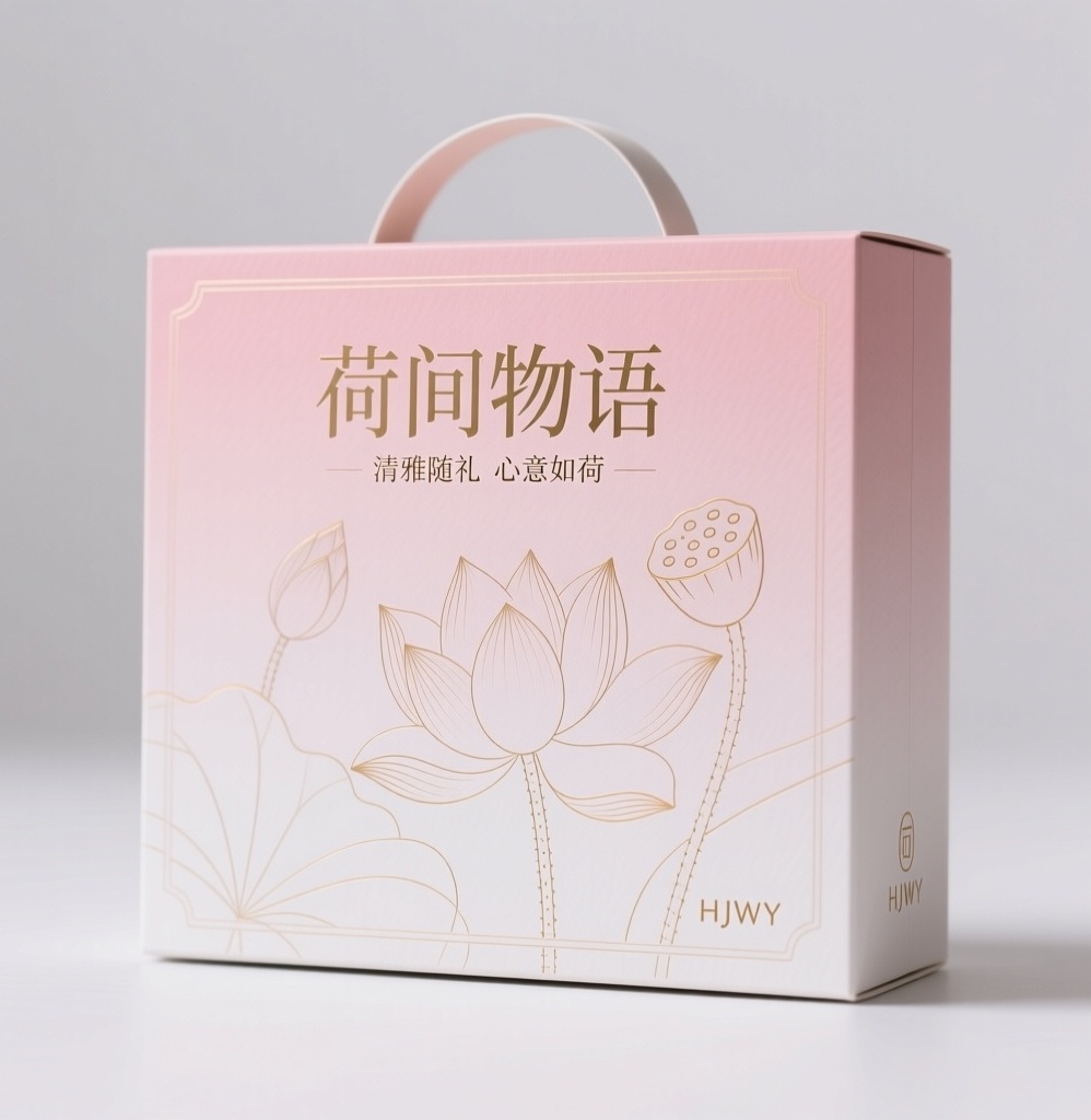 - **品牌名及宣传语**:荷间物语 · 清雅随礼 心意如荷