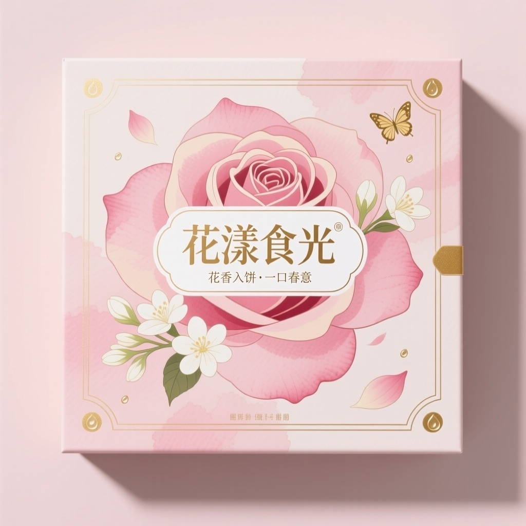 - **品牌名及宣传语**:花漾食光 —— 花香入饼·一口春意