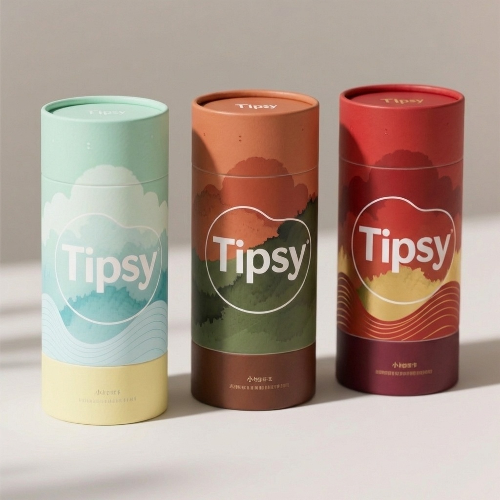 基于原纸筒盒结构,生成三款新配色方案:1. 春夏清新风格,使用明亮柔和的色彩如浅绿、淡蓝、鹅黄;2. 秋冬大地风格,采用温暖深沉的色调如赭石、墨绿、深棕;3. 节日专属风格,融合春节(红金)或中秋(深蓝、银白、暖黄)的经典配色。必须严格保持原有的包装形状、尺寸、图案布局和所有细节(如文字、logo、纹理等)完全不变,仅改变颜色。