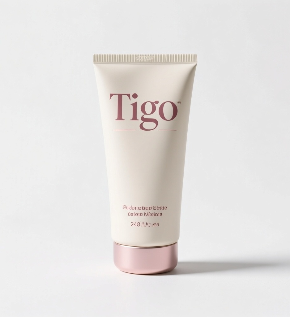 围绕纯净极简护肤主题,设计一款管状护肤产品包装。面向追求成分透明与使用体验的都市轻熟肌人群,融入品牌名为“Tigo”。设计内容为包装正面主视觉面:竖向居中排布定制无衬线字体“Tigo”,无任何图形、边框或背景图案,强调绝对留白与视觉呼吸感。颜色采用柔和燕麦米白为主色调,灰调豆沙粉仅用于字体微点缀(如字母“i”的顶部圆点或极细下划线),保持低对比与高统一性。管身选用哑光质感铝塑复合材质,文字通过同色系微凸起UV印刷工艺实现触觉层次,在光照下呈现细腻哑光渐变过渡。整体版面严谨对齐、字号比例经黄金分割校准,背景干净纯白,凸显包装真实材质肌理与极简主义的克制力量,传递专业、纯净、值得信赖的护肤体验。(248字)