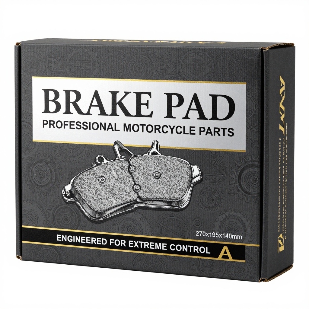 - **设计元素**:背景层为深灰织物纹理模拟高级工具箱内衬;主图案为激光雕刻风格刹车组件线描图;装饰线条使用极细金箔分割线划分信息层级;无冗余图标,仅在右下角加入极小烫金“A”字母徽标;材质选用高密度瓦楞+触感膜+局部烫金工艺。