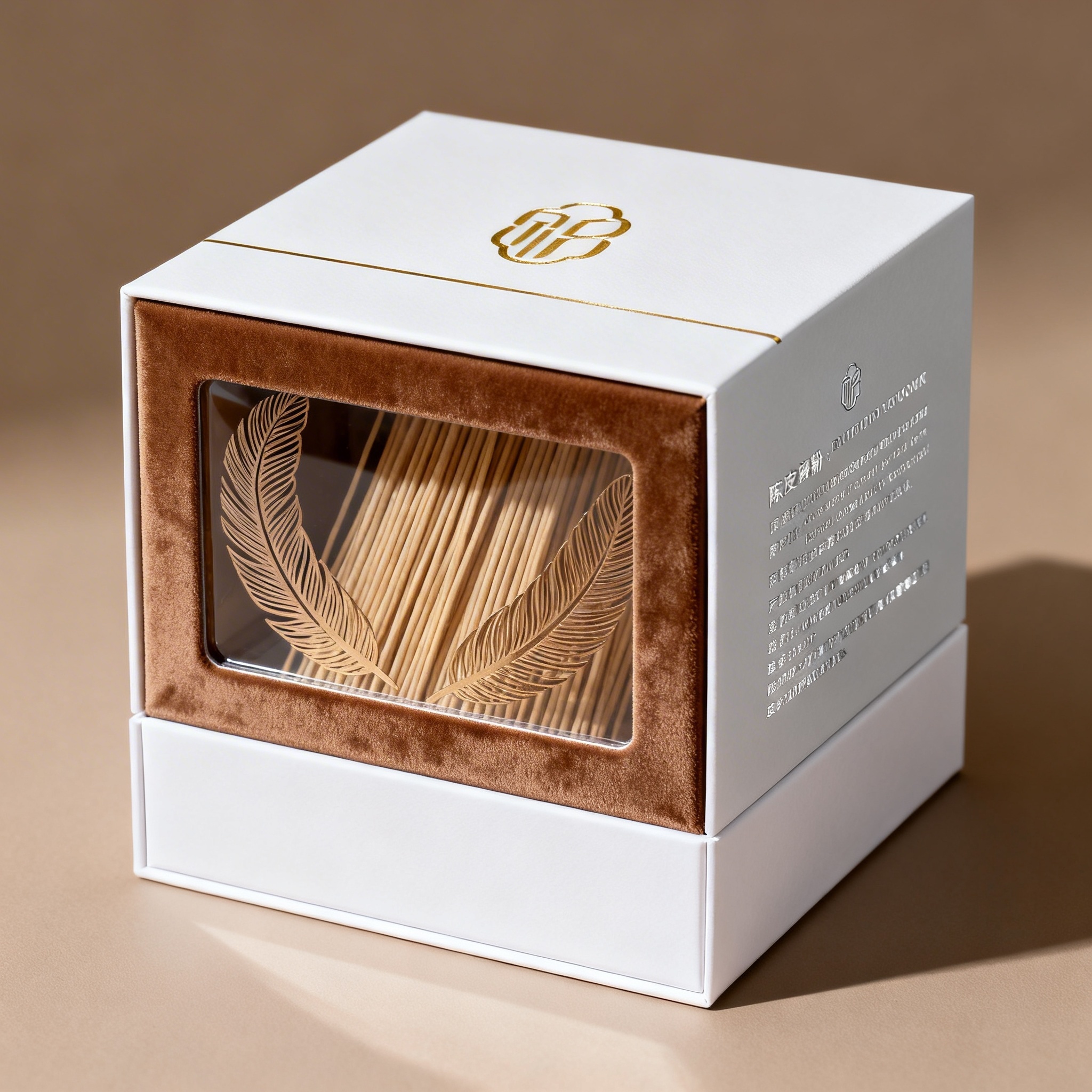 产品:陈皮中药速溶奶茶粉;品牌名:陈皮奶茶·年轻养生 轻享口味;包装样式:硬质抽屉式礼盒,采用陈皮棕哑光微绒纸基,触感温润细腻;包装营销卖点:以“看得见的真材实料”为核心,开窗透出真实奶茶粉条形态,强化天然、通透、无添加的轻养生概念;包装主视觉面排版:上下结构,香槟金烫印品牌Logo居顶中央,下方细线分隔,中部60%面积为PET膜开窗直视粉条,底部大面积留白,无文字干扰,聚焦产品本体;设计风格:极简轻奢主义,强调材质肌理与负空间美学;主题配色:奶白色 + 陈皮棕。背景层为哑光绒感陈皮棕纸基,主图案为透明开窗内真实粉条陈列,开窗边缘压印抽象鸭羽纹理暗纹提升细节质感,无装饰线条或图标,背面信息以浅灰底+银色无衬线细体字低调呈现,整体依靠材质对比、烫金工艺与留白构建高级视觉层次。