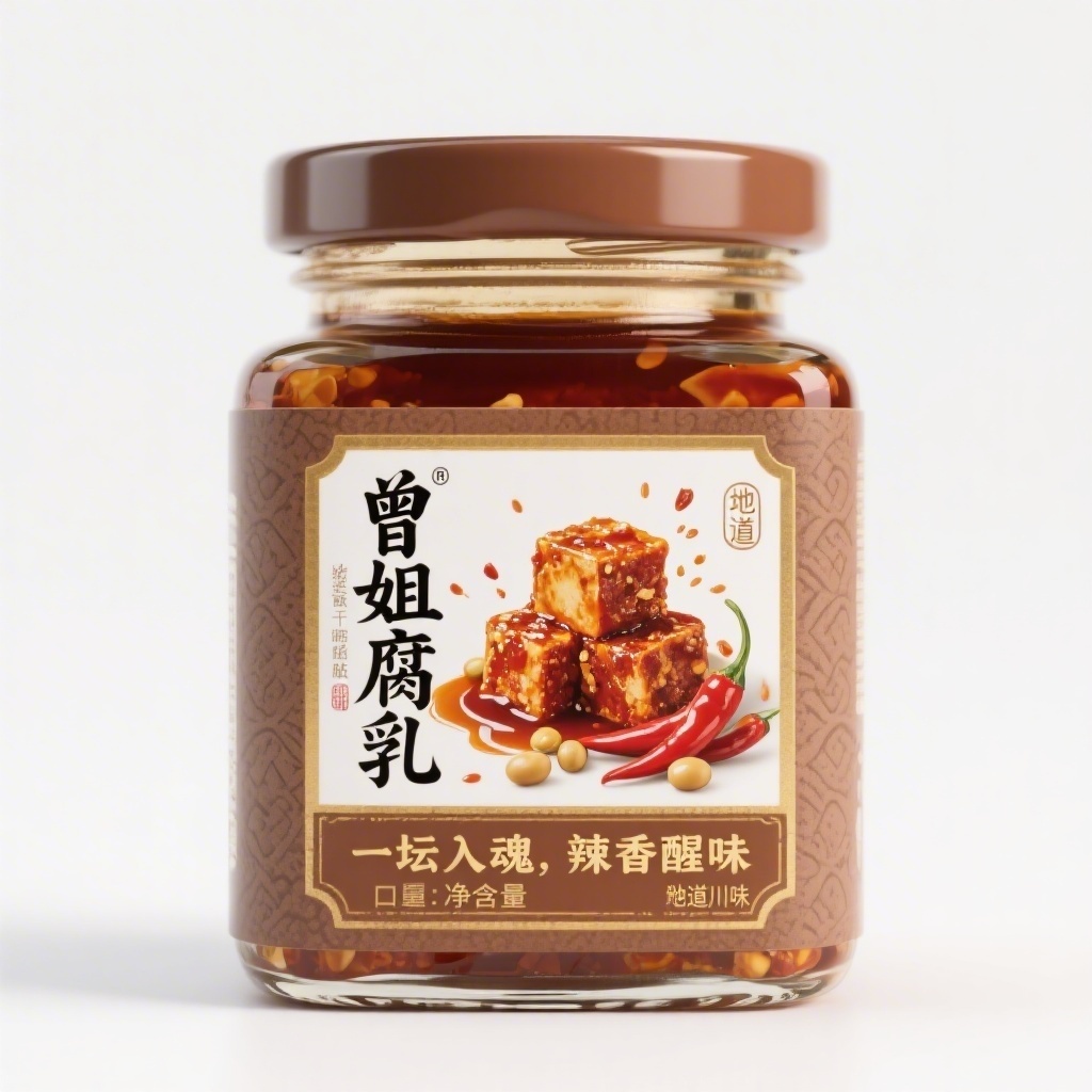 - **品牌名及宣传语**:曾姐腐乳 · 一坛入魂,辣香醒味