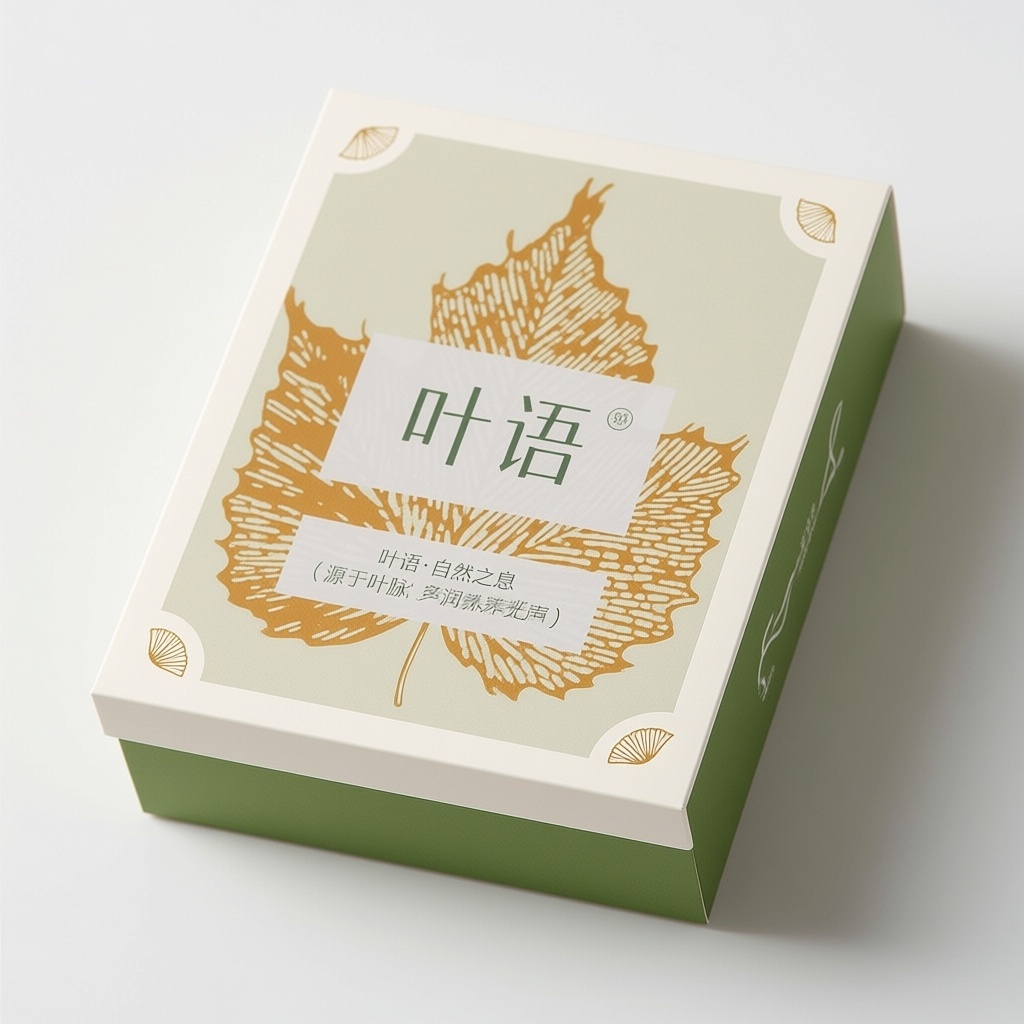 - **设计元素**:背景层为磨砂触感的米白色特种纸,主视觉为烫金工艺绘制的银杏与枫叶交织叶脉图案,四角点缀微型镂空叶形图标,侧面压印品牌首字母“Y”抽象叶形符号,内衬使用再生环保纸浆模塑